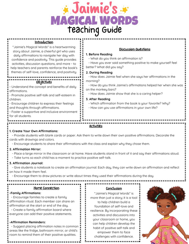 Jaimie's affirmations become her guiding light - instilling confidence, kindness, and self-love. Through colorful illustrations and heartwarming storytelling, 'Jaimie's Magical Words' inspires young readers to embrace positivity and the magic that lies within.